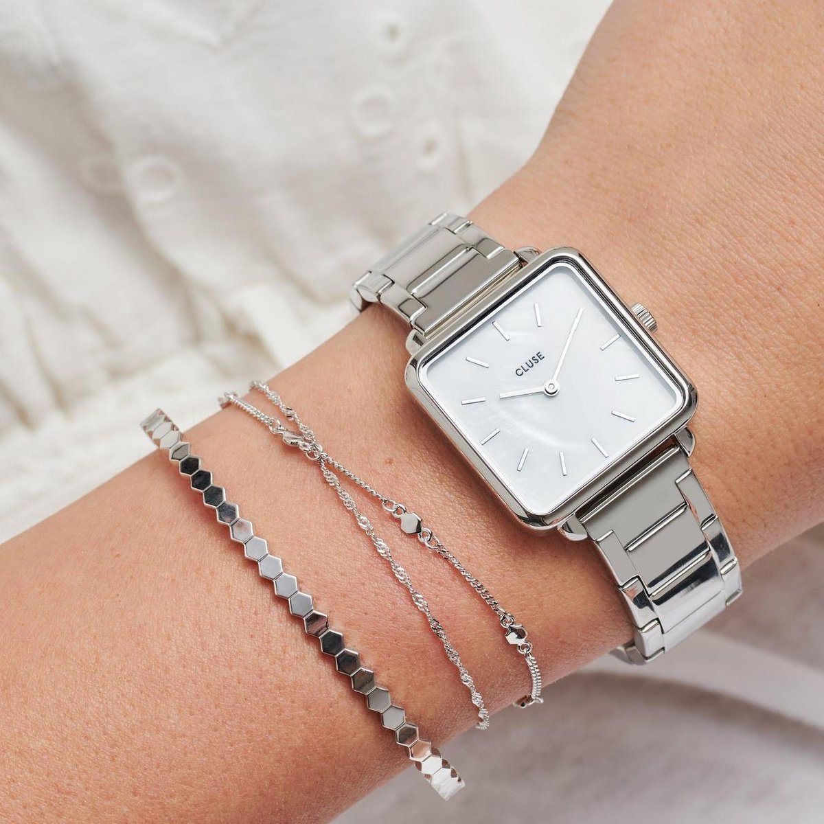 cluse horloge vierkant zilver