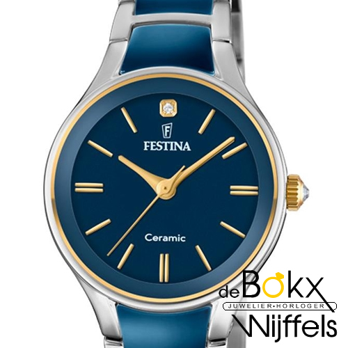 festina horloge blauwe wijzerplaat