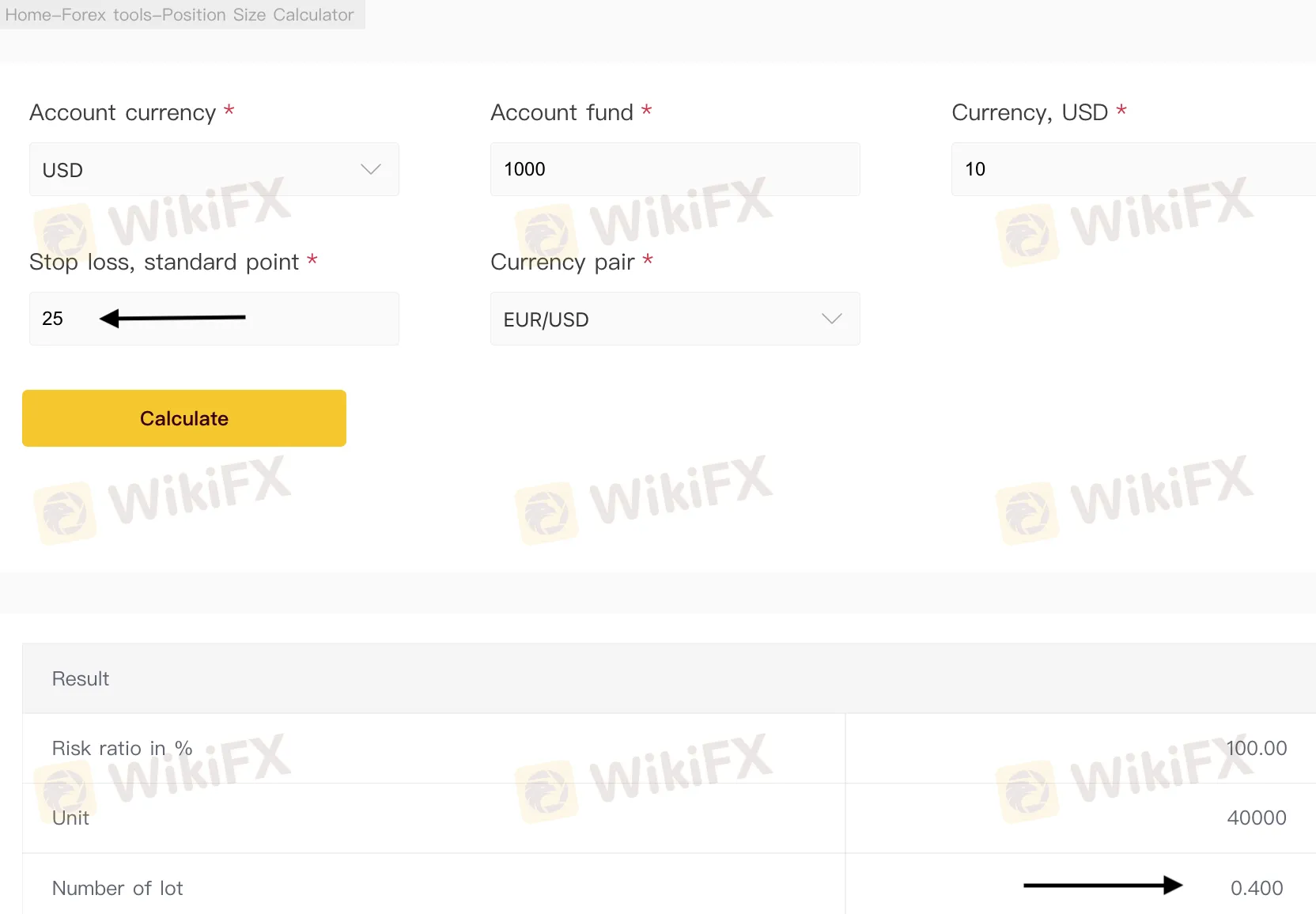 fx size calculator