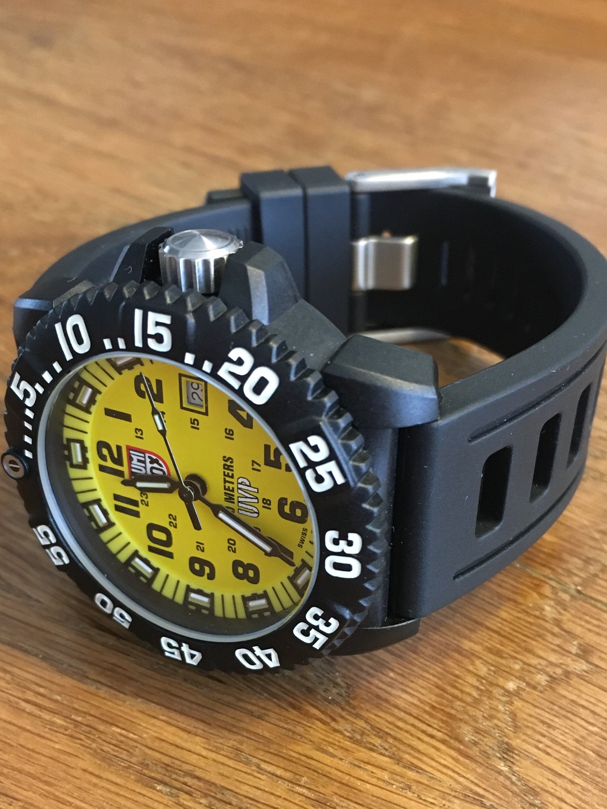 horloge met gele wijzerplaat
