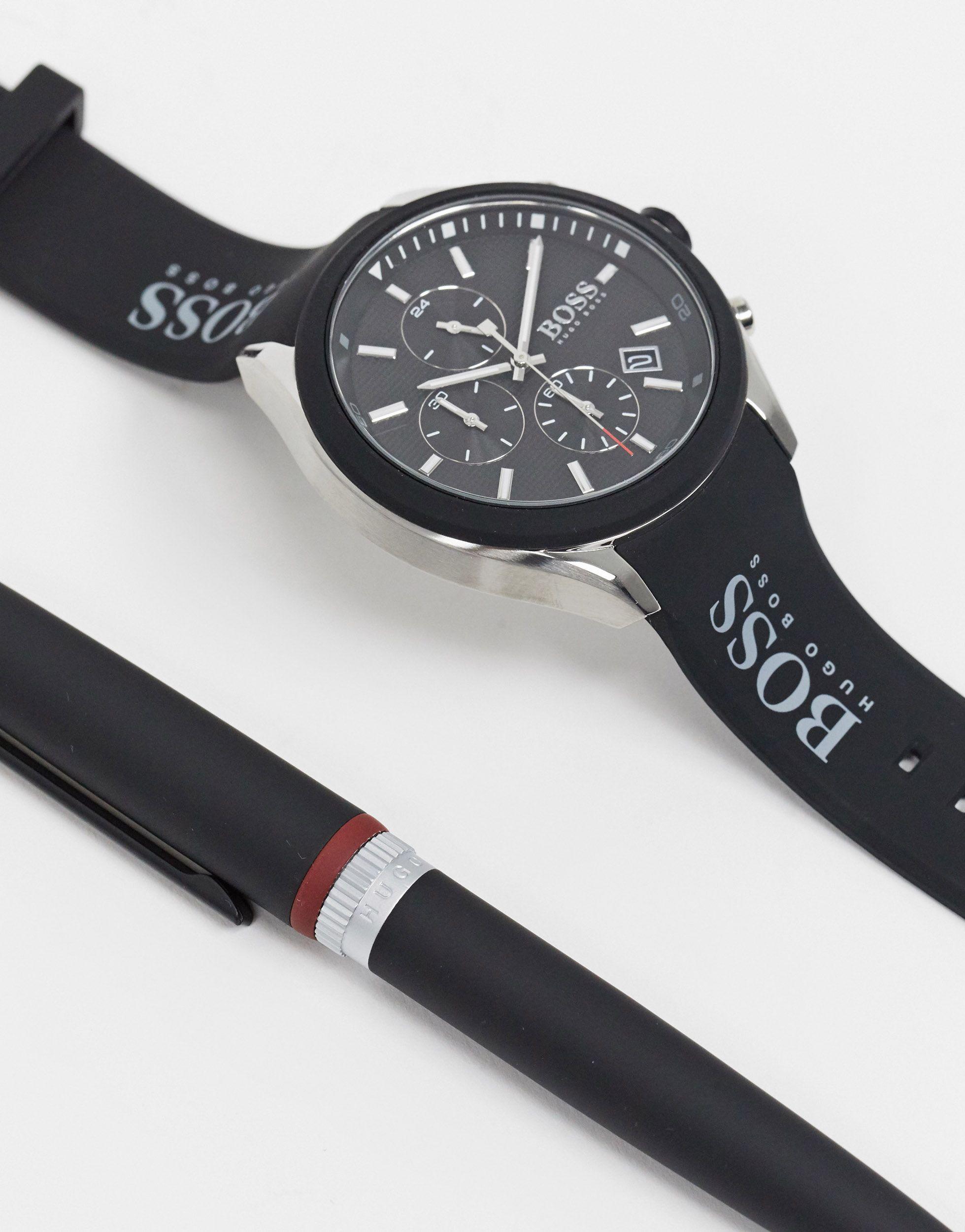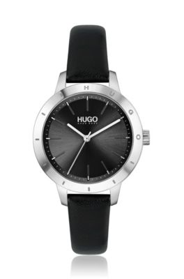 hugo boss horloge zwart leren band