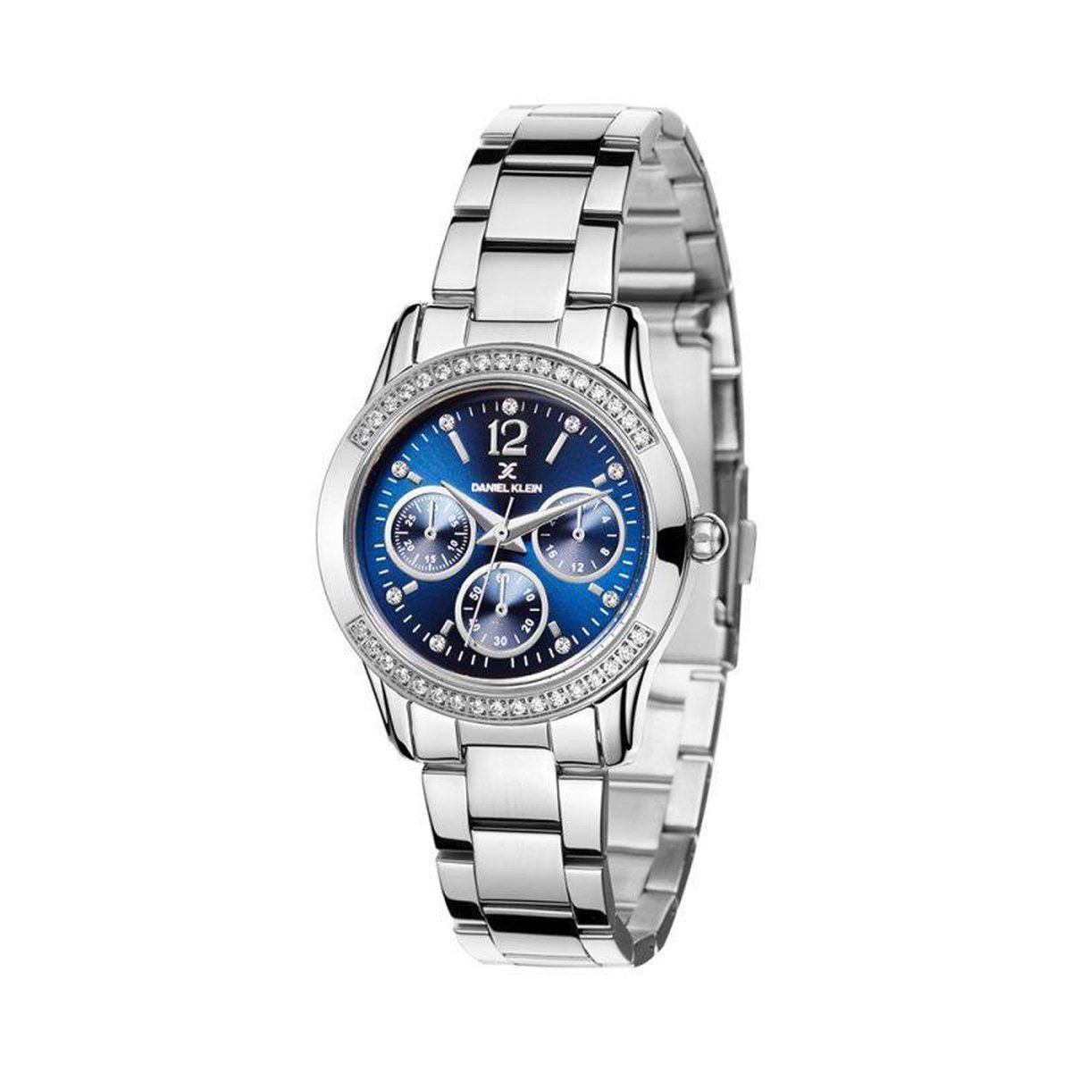 zilver horloge met blauwe wijzerplaat dames