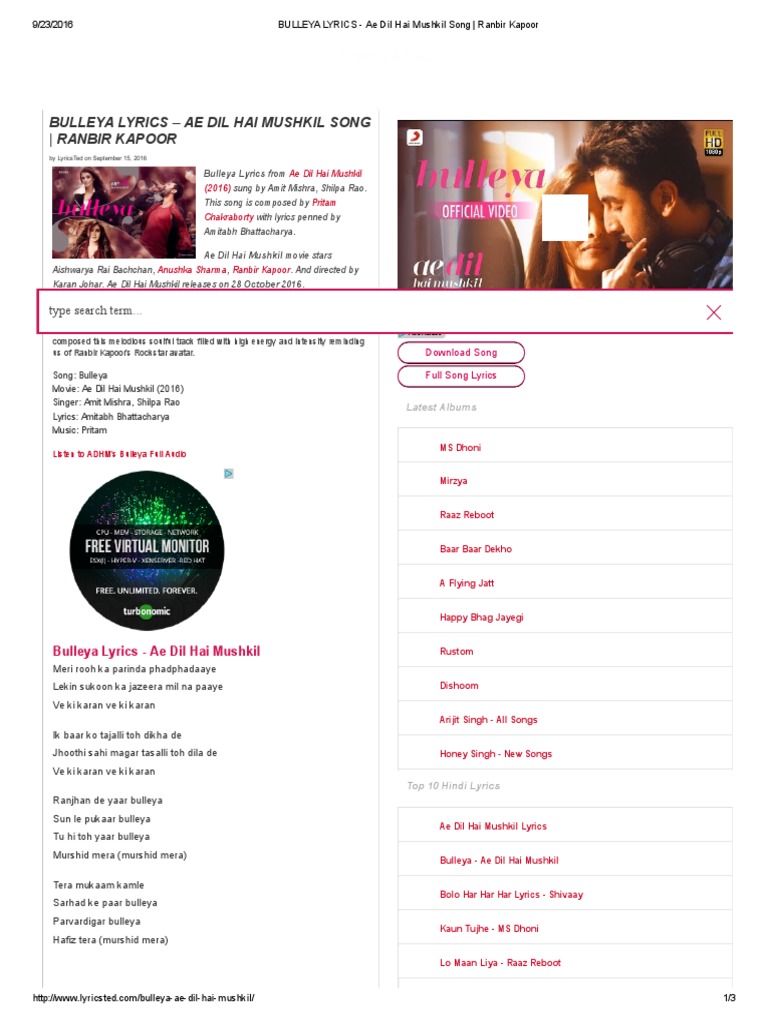 ae dil hai mushkil lyrics