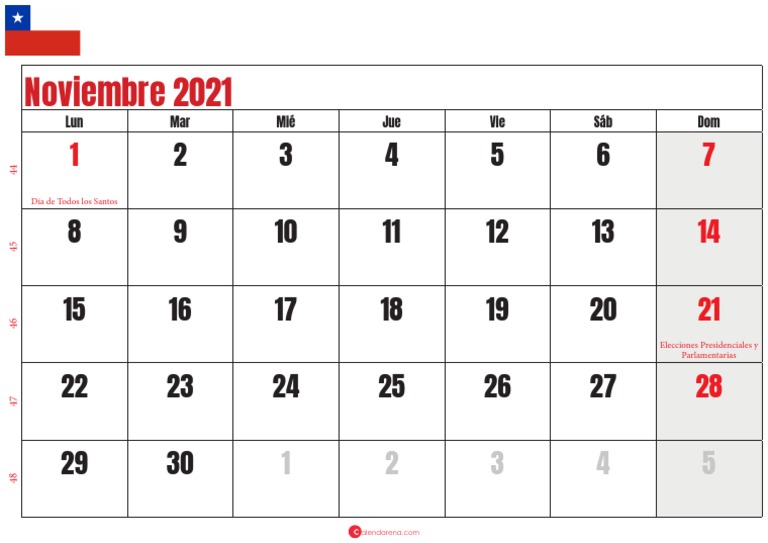 calendar noviembre 2021