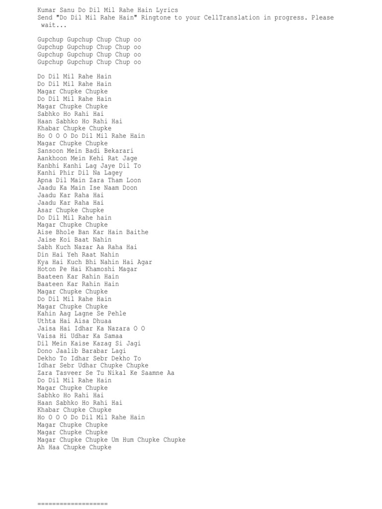 do dil mil rahe hain lyrics