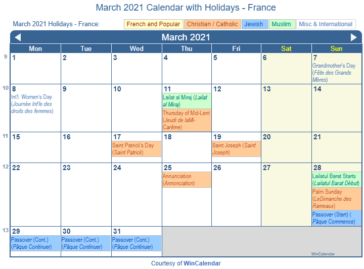 holidays in march 2021