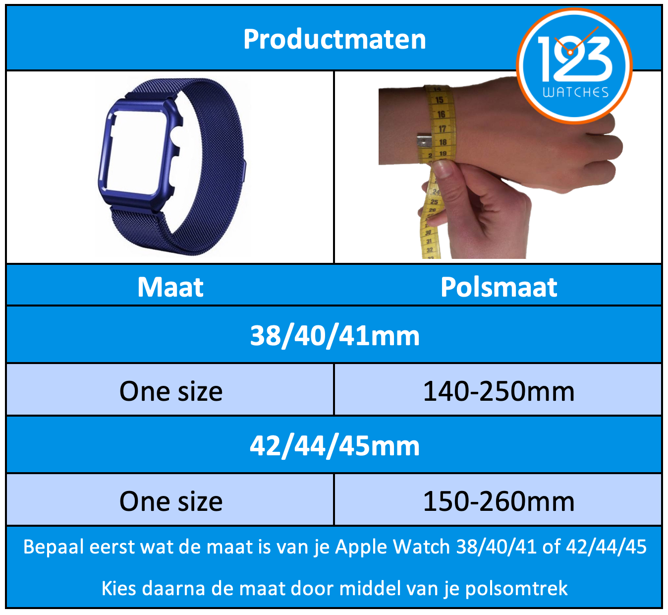 horloge maat tabel