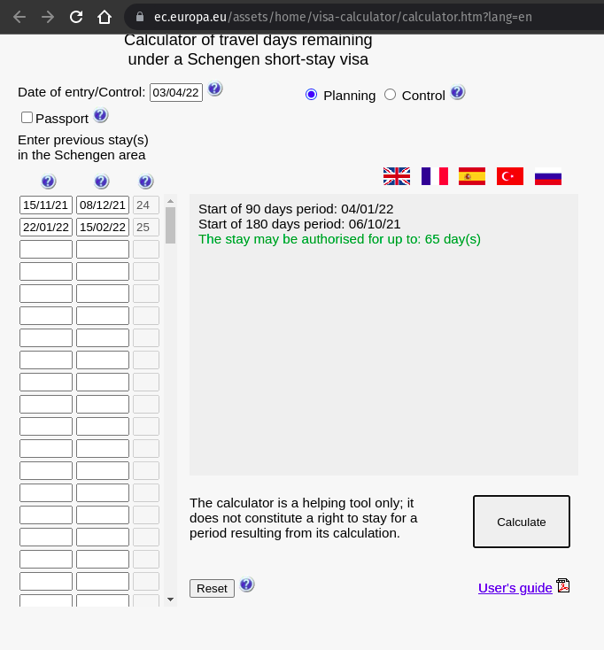 short stay visa calculator