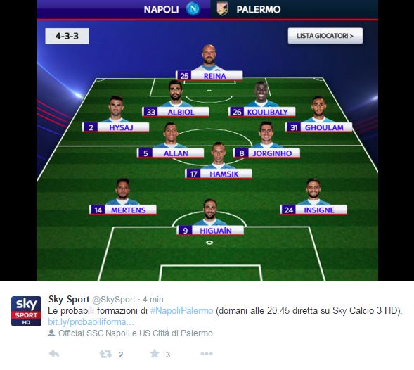 sky sport italia probabili formazioni