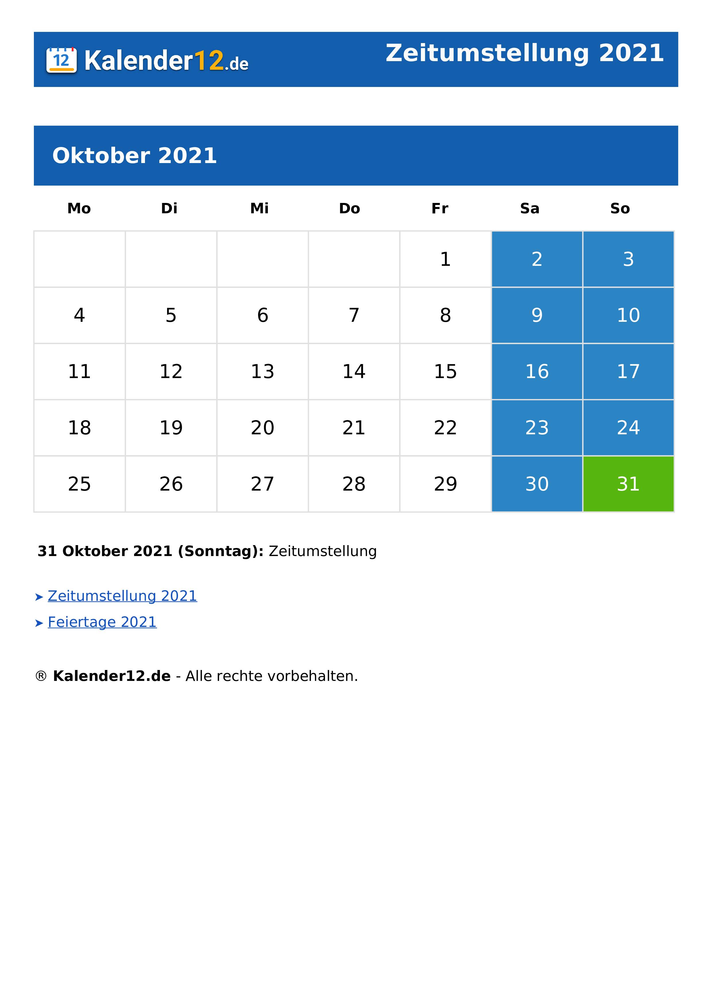wann ist zeitumstellung 2021
