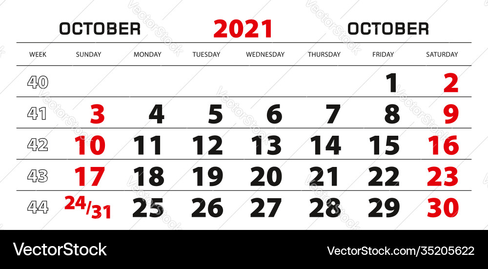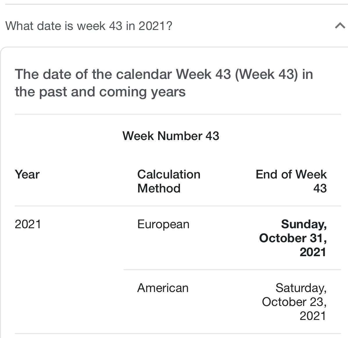 week 43 2021 calendar