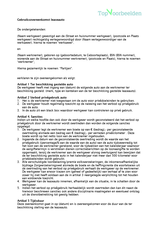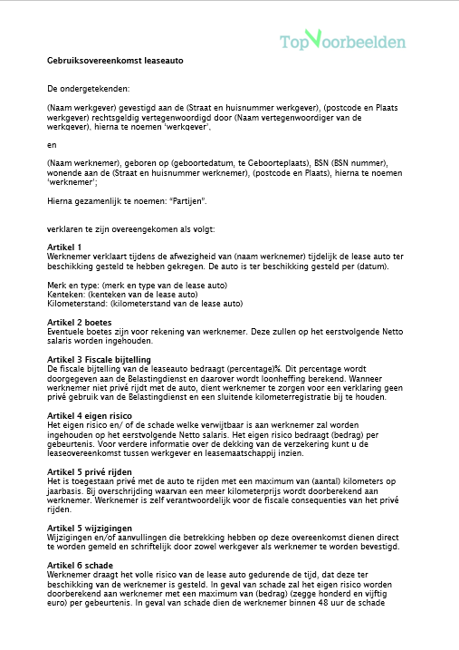 gebruikersovereenkomst fiets van de zaak