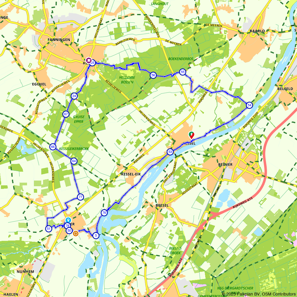 knooppunten fietsroute langs de maas
