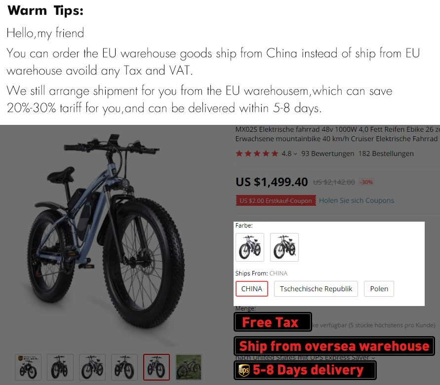mx02s 48v 1000w 26 fat tire elektrische mountainbike