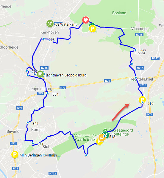 route fietsen door de bomen