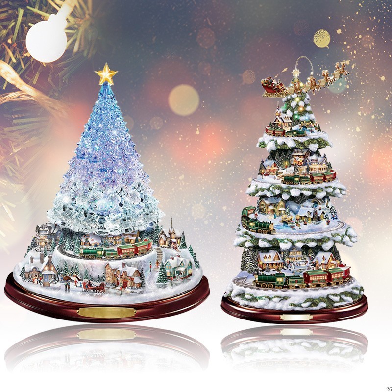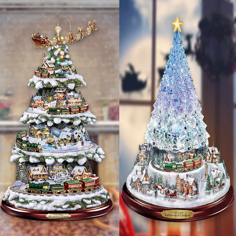 christmas tree rotating sculpture train