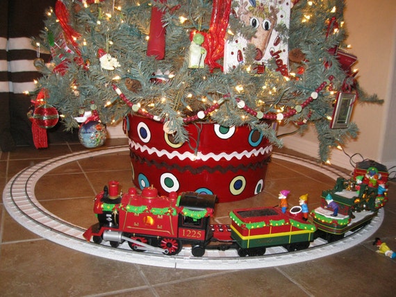 christmas tree with train inside