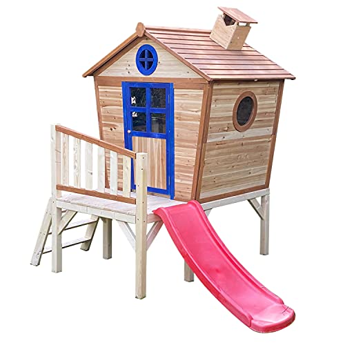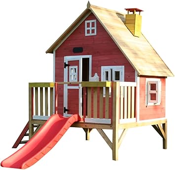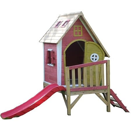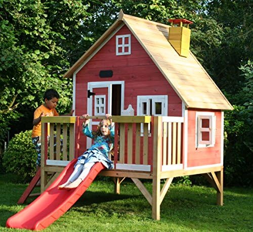 crooked playhouse with slide