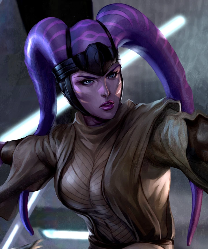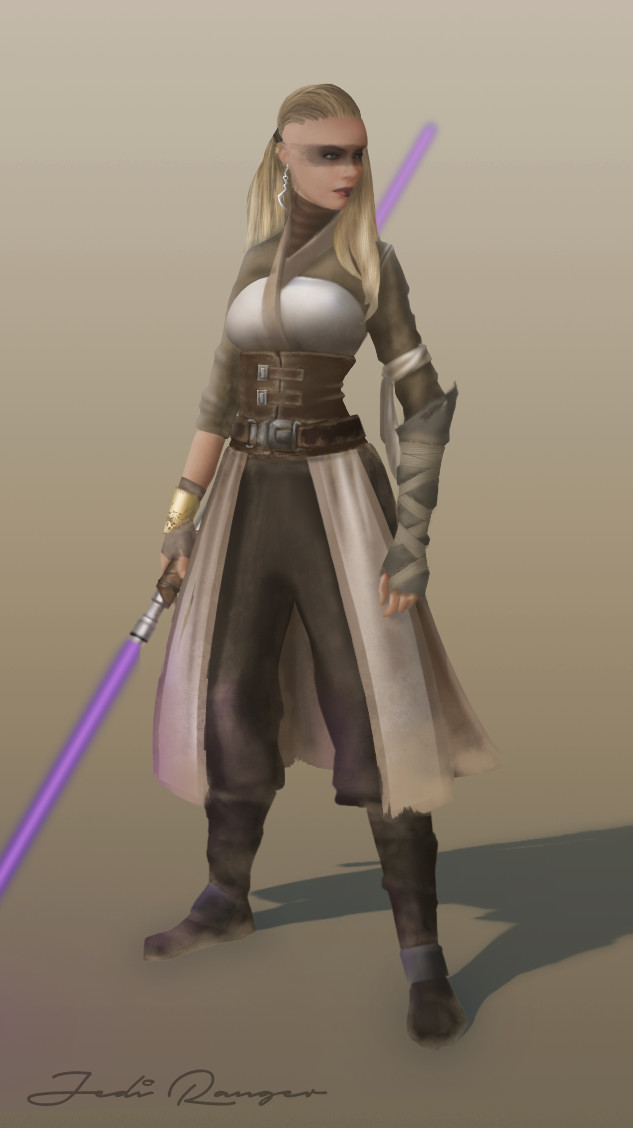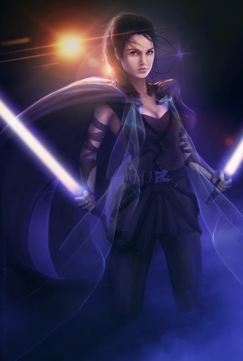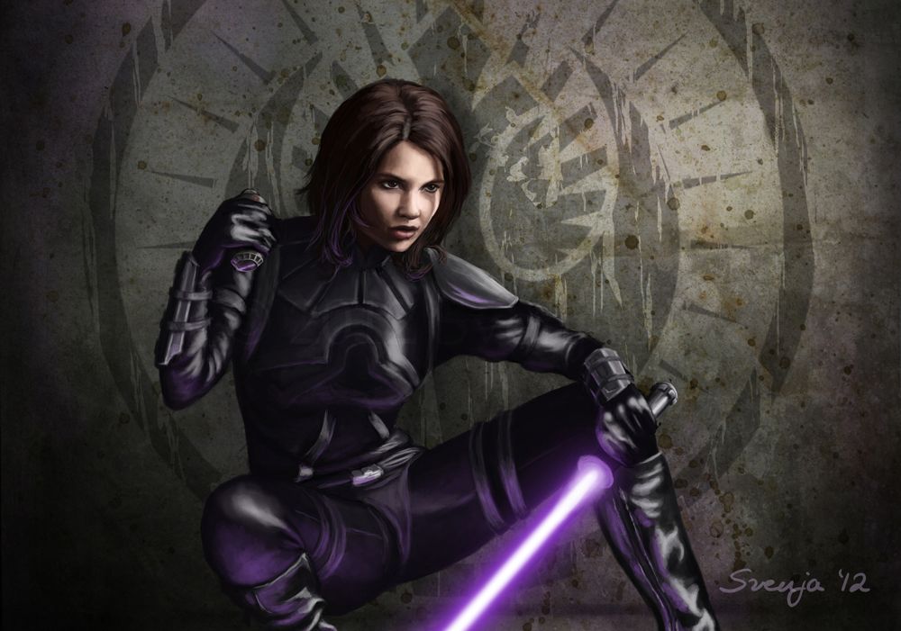 female jedi with purple lightsaber