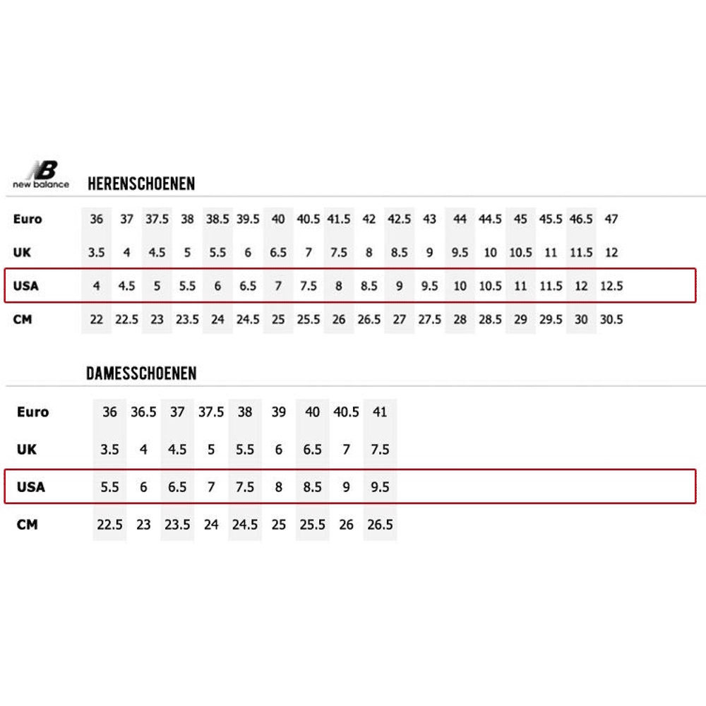 maattabel new balance dames